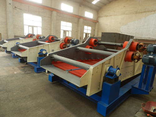脱水筛又叫脱水筛、脱水振动筛、煤泥脱水筛等,其设计结构合理,独特新颖,采用振动电机作激振源,物料进行抛掷运动,达到筛分处理的目的,主要用于细小或微小物料的分级和脱水以及煤泥回收,特别适用于板框压滤机系统前的煤泥脱水。我公司生产的聚氨酯脱水振动筛主要由筛箱、激振器、支承系统及电机组成,并选用优质结构钢制作,筛网采用高分子聚合材料聚氨酯筛网。筛型品种全,能够充分满足不同入料特性和不同处理量的筛分工艺要求。
