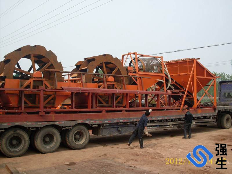 轮斗式洗砂机是我公司采用外技术结合砂石行业实际情况研制生产的配合制砂机使用的高效轮斗式洗砂设备,该设备兼有清洗、脱水、分级三种功能,该机在制砂工艺中,用于洗净砂子中的混土、粉尘等,达到洁净砂子的目的,亦可用于选矿等作业中的提砂或类似的工艺中,产量高达600t/h。
